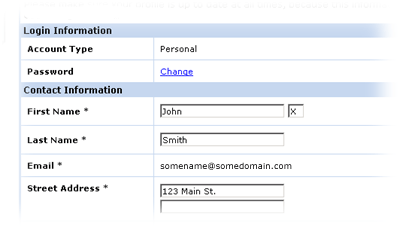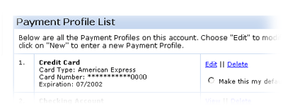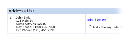My AddressBook and My Billing hold your billing information for quick use when placing an order. You will only have to provide the address or payment information once, and then you can use it for future orders by simply choosing it from a list.